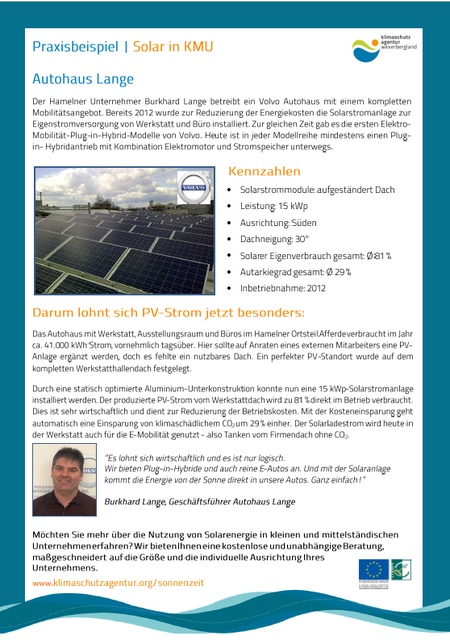 Der Kindergarten in Grupenhagen hat inzwischen eine eigene PV-Anlage mit einer installierten Leistung von 9,7 kWp auf seinem Dach. Auch die Ausschreibung für die Installation einer PV-Anlage für die Grundschule Aerzen wird derzeit erarbeitet. Anfang des neuen Jahres soll die Anlage dann aufs Dach. Andreas Wittrock, Bürgermeister des Fleckens, ist von der Solarenergienutzung überzeugt: „Mit diesen Maßnahmen soll der CO2-Ausstoß vermindert werden, wodurch ein Beitrag für den Umwelt- und Klimaschutz geleistet wird. Aber es stellen sich auch langfristig Einsparungen bei den Strombeschaffungskosten ein und darüber hinaus kann der nicht durch Eigenverbrauch genutzte Strom in das öffentliche Stromnetz eingespeist werden.“ Die kompetente Beratung hätte maßgeblich zur Entscheidung beigetragen, Solarenergie nun verstärkt für kommunale Gebäude ins Auge zu fassen und im Falle der Eignung auch umzusetzen. So wurde zwischenzeitlich auch das Freibaddach mit einer PV-Anlage ausgestattet. Herr Wittrock hat bereits weitere Liegenschaften ausgeguckt, für die ebenfalls eine Prüfung vorgenommen werden soll. Der Kindergarten „Unter dem Regenbogen“ und die Grundschule Groß Berkel sollen in den nächsten Wochen unter die Lupe genommen werden. Eine Eignungsprüfung für Solarenergienutzung könne er jeder Kommune nur empfehlen.